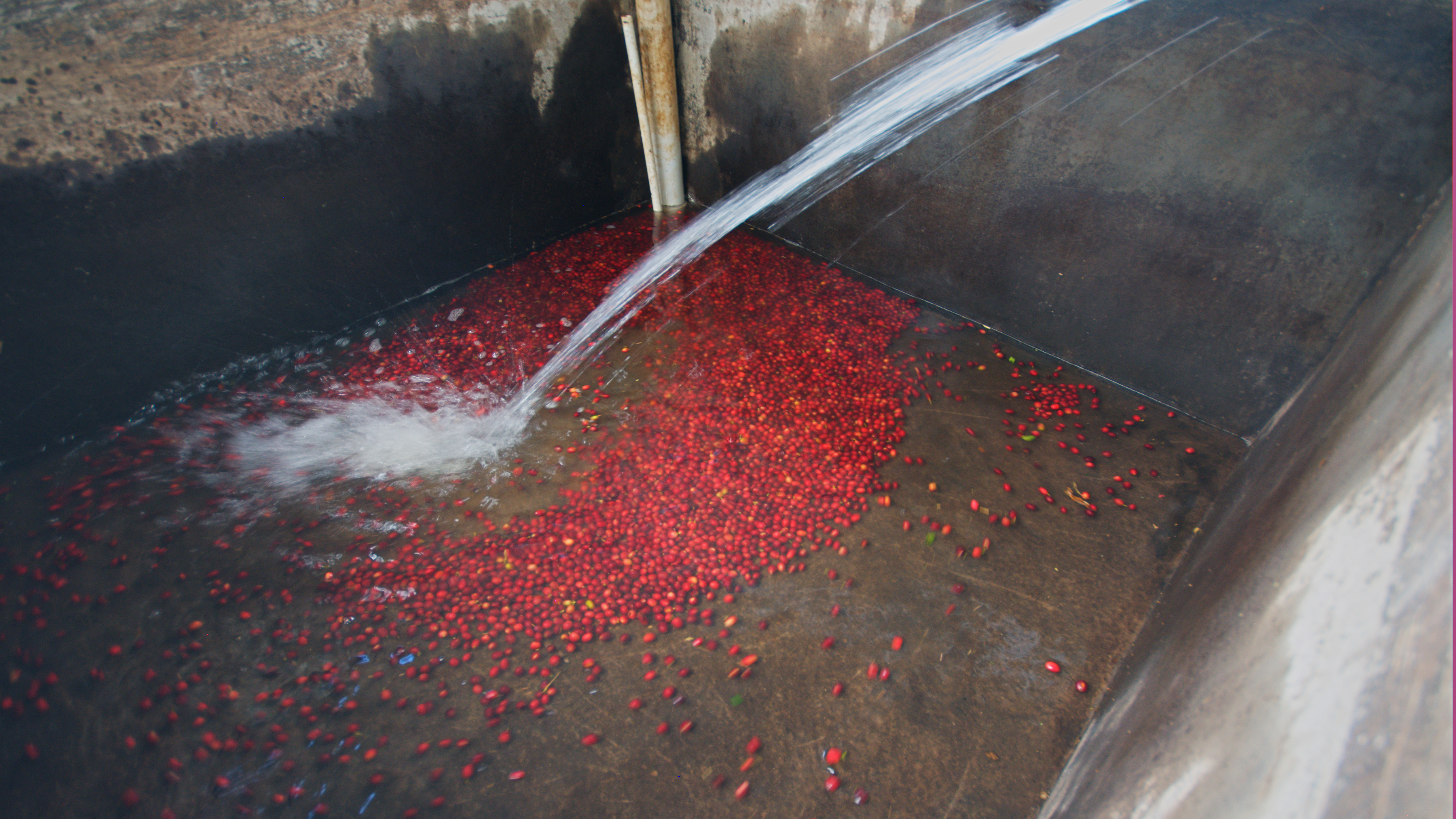 Vše začíná sklizní kávových třešní. Protože kávovníky neplodí najednou, probíhá sklizeň ručně, aby byly sbírány pouze zralé plody. Ty se hned po sklizni ponoří do vody, kde se defektní nebo nezralé třešně oddělí od těch kvalitních. Defektní plody zůstávají na hladině, zatímco zralé třešně klesnou ke dnu.