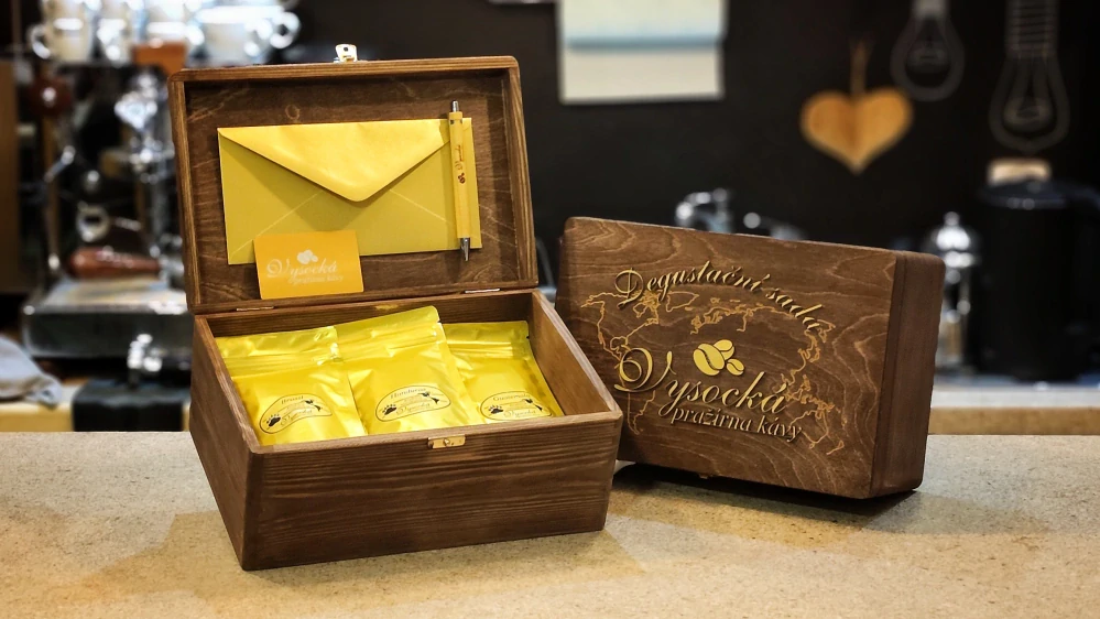Na letošní rok jsme připravili specialitku v originálním balení ve dvou variantách: se dvěma silnostěnnými šálky a šesti druhy káv, nebo BEZ šálků jen se šesti druhy káv, které jsou praženy na třech různých pražičkách. Náš technologický arzenál jsme využili na maximum.